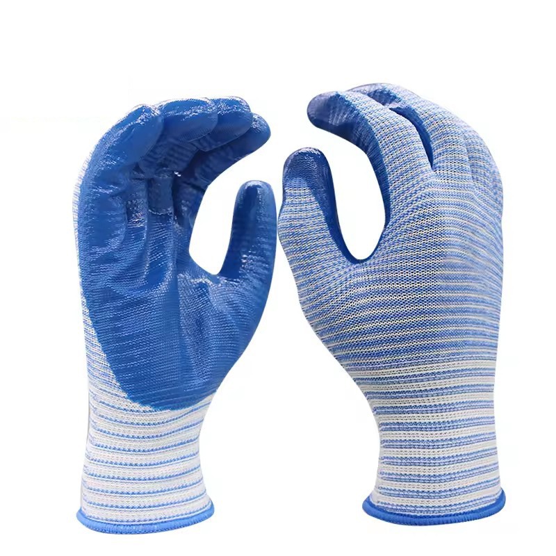 13G Polyester Shell Nitrile Coated Work Gloves Industrial Anti-Slip Breathable Protective Safety Gloves