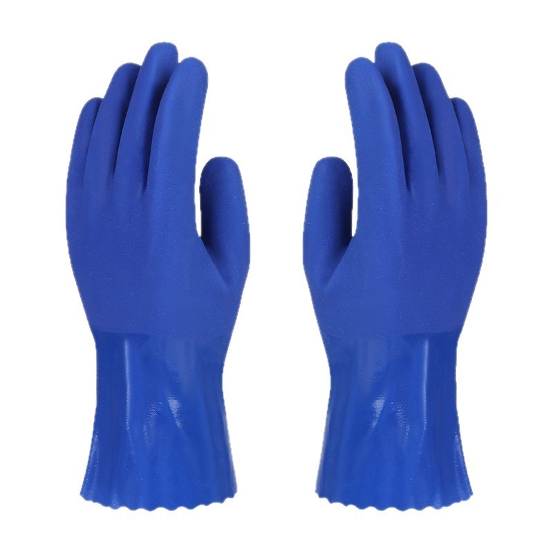Industrial Heavy Duty Safety Gloves Sandy Blue PVC Smooth Palm Waterproof Gloves