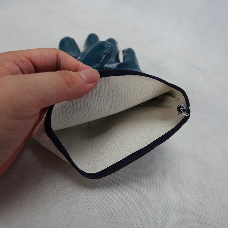 Oil Resistant Blue Nitrile Jersey Liner Fully Coated Open Cuff Heavy Duty Work Gloves