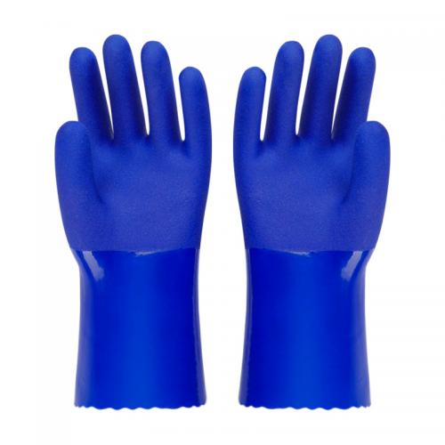 Industrial Heavy Duty Safety Gloves Sandy Blue PVC Smooth Palm Waterproof Gloves