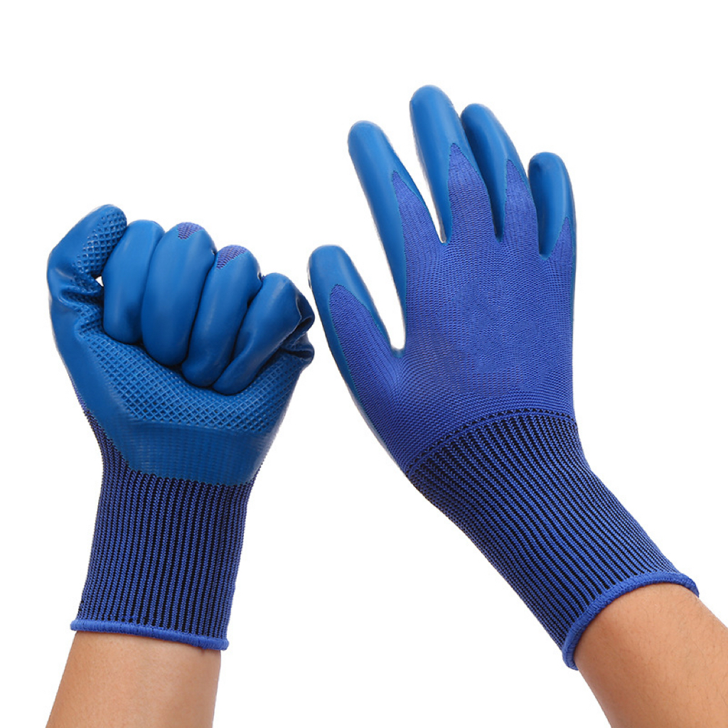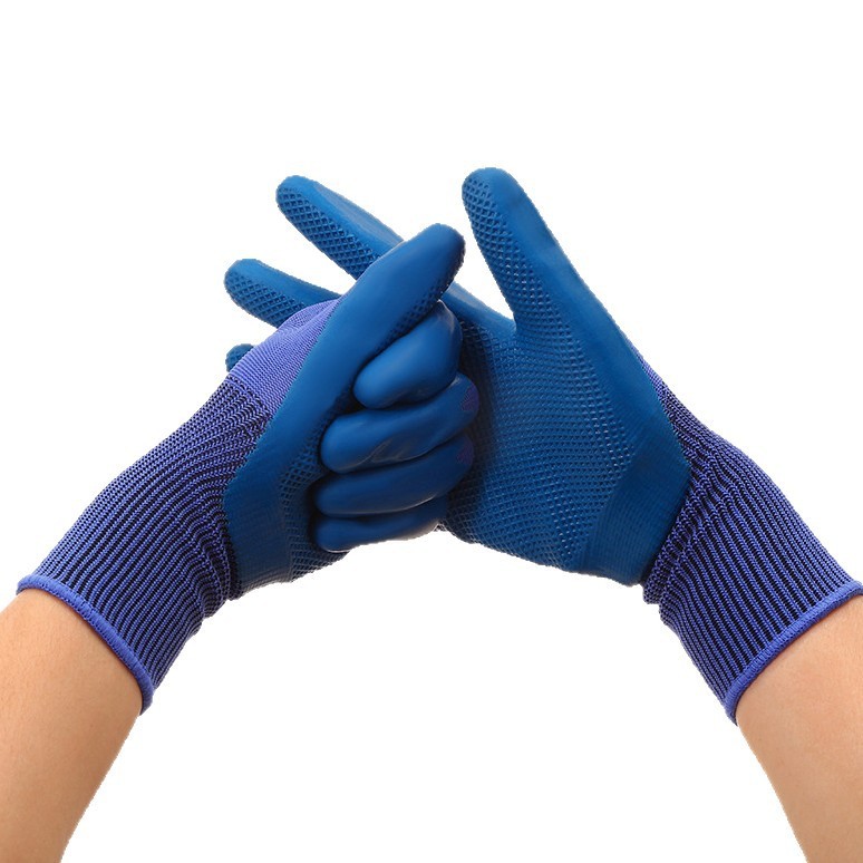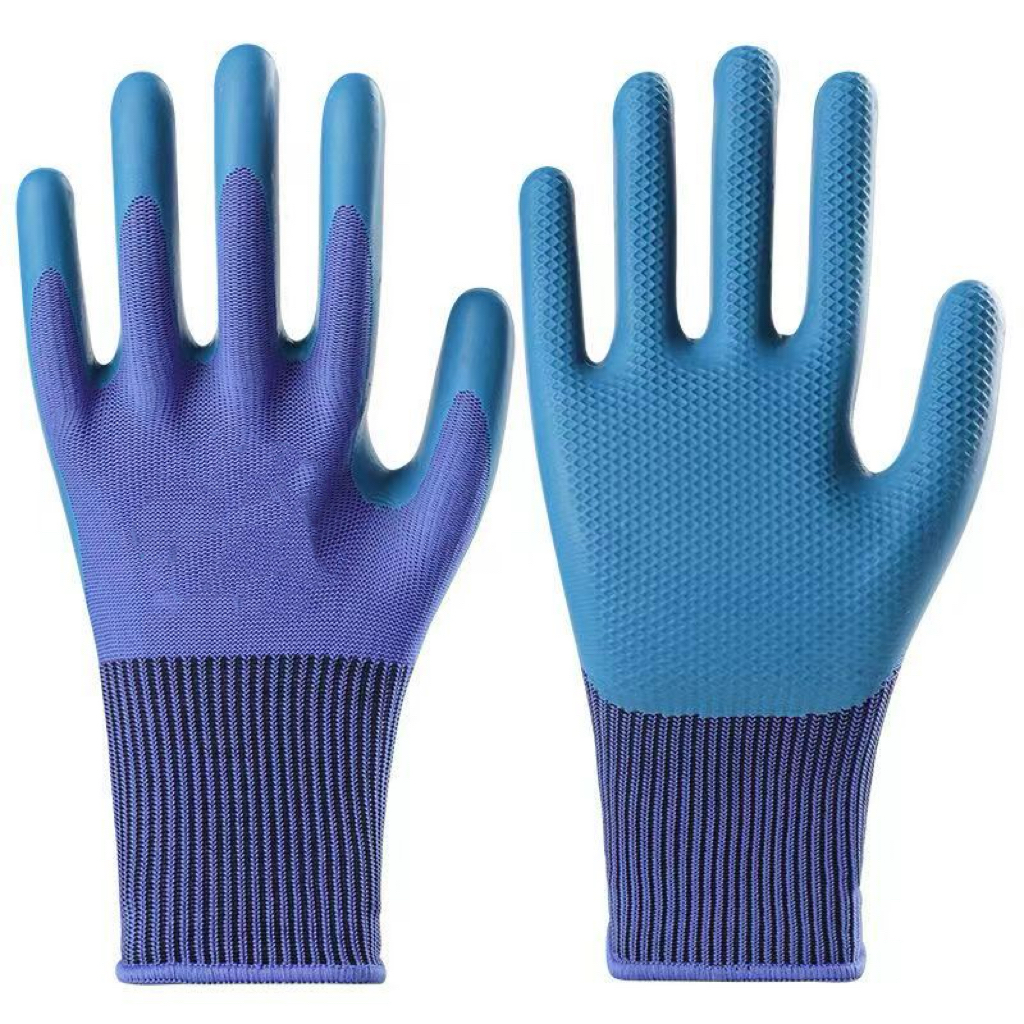 Blue Latex Physical Embossing Working Anti-Slip Safety Industrial General Purpose Latex Coated Gloves