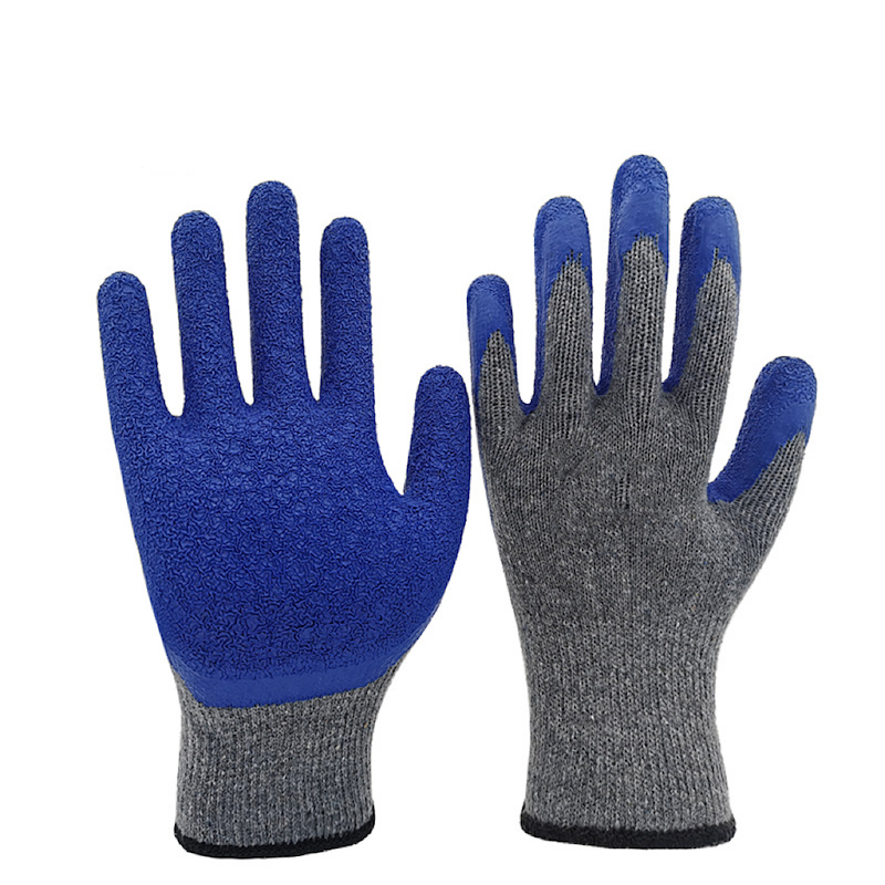 Crinkle Grip Ant-slip Latex Palm Coated Gloves 10 Gauge Grey Yarn Natural Latex Dipped Industrial Work Gloves