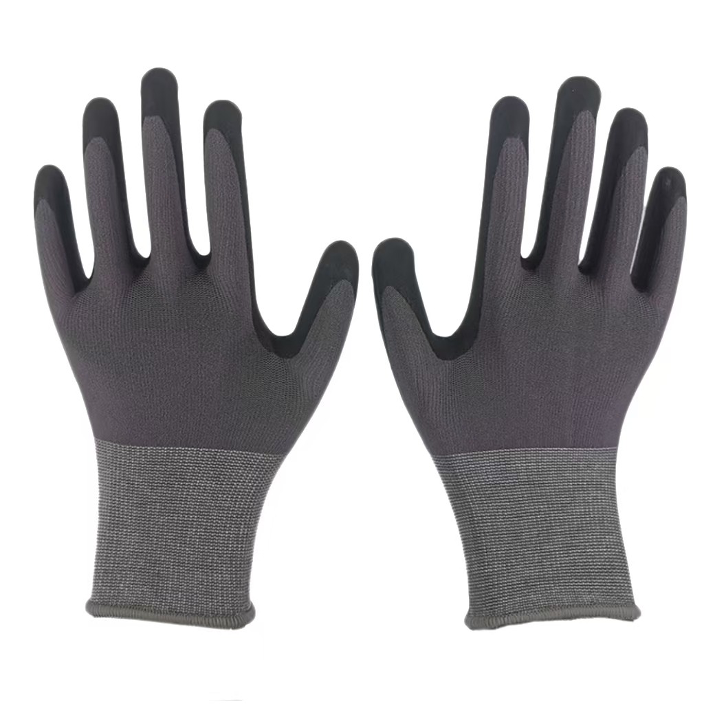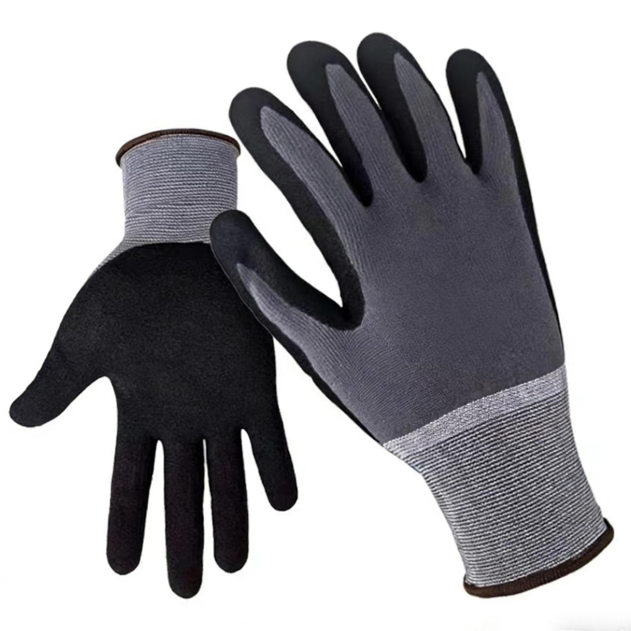 15G Grey Nylon and Spandex Black Nitrile Sandy Coated Work Grip Safety Gloves