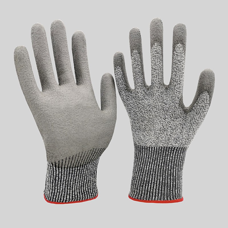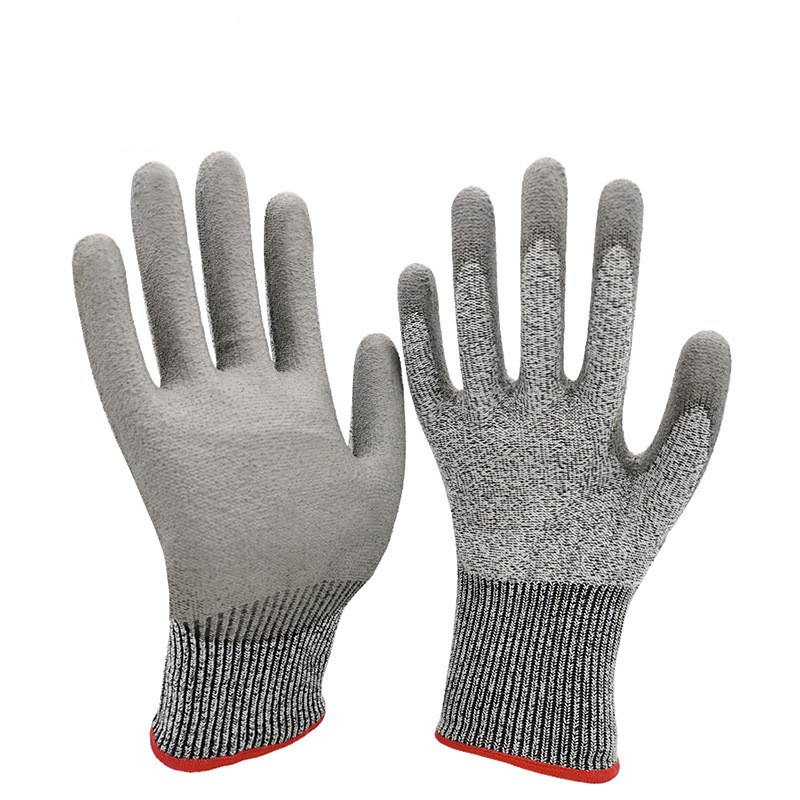 Cut Resistant Gloves Glass Handling Wood Working Level 5 Anti Cut PU Coated Gloves