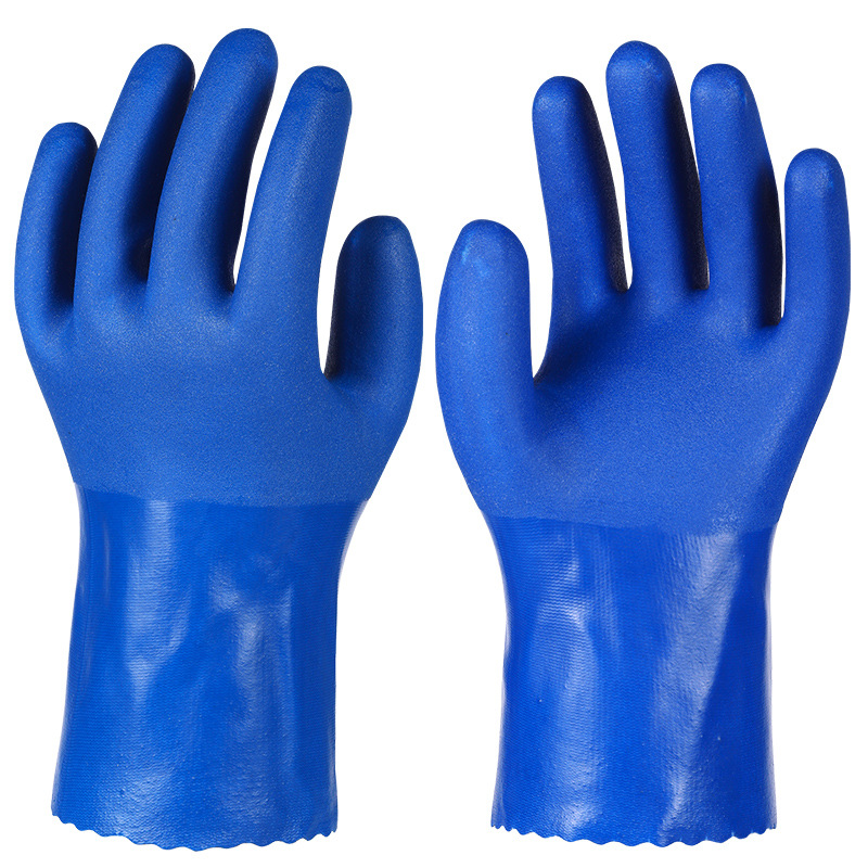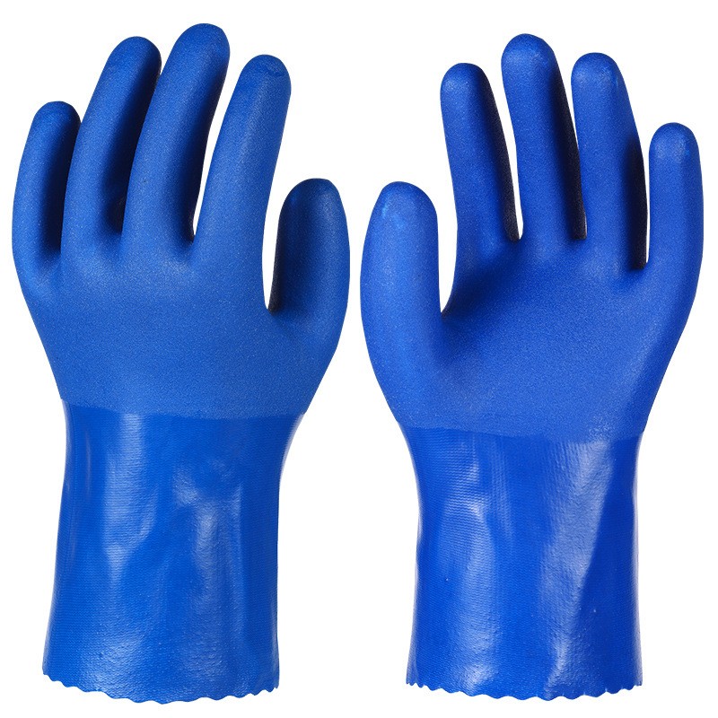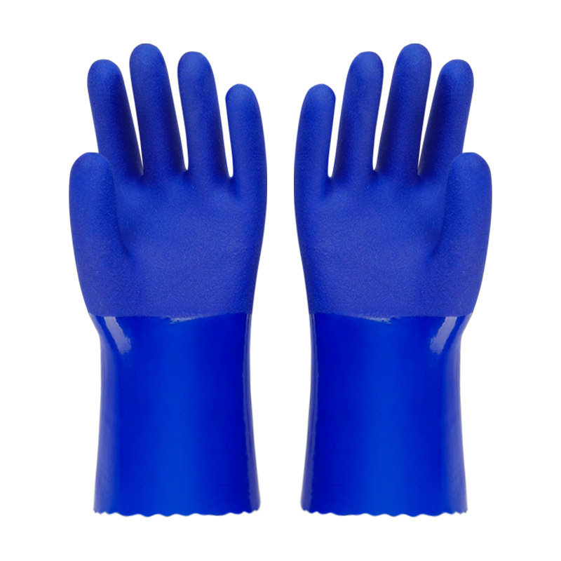 Industrial Heavy Duty Safety Gloves Sandy Blue PVC Smooth Palm Waterproof Gloves |