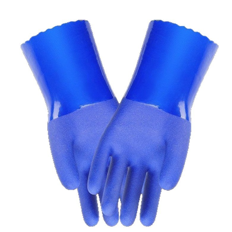 Industrial Heavy Duty Safety Gloves Sandy Blue PVC Smooth Palm Waterproof Gloves