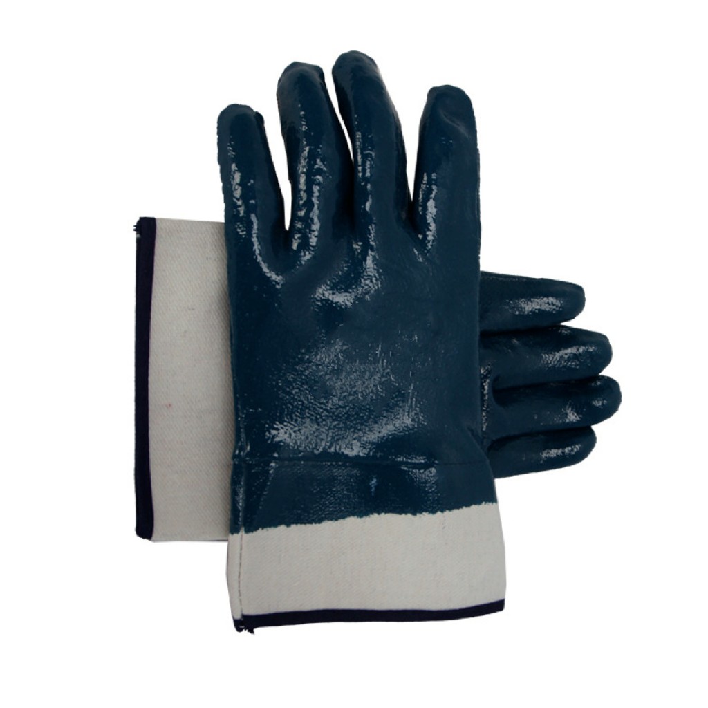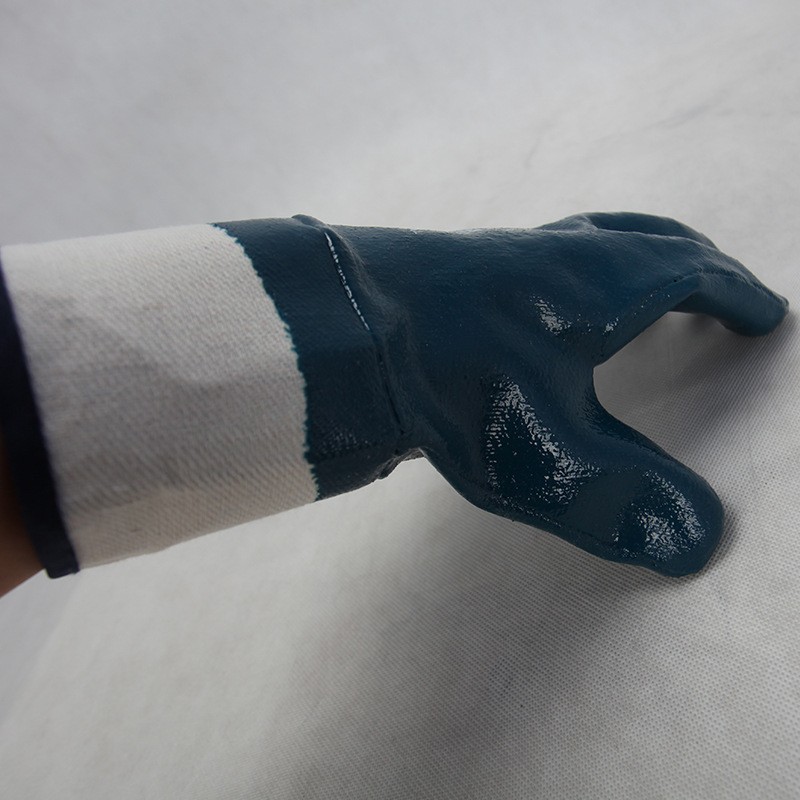 Oil Resistant Blue Nitrile Jersey Liner Fully Coated Open Cuff Heavy Duty Work Gloves