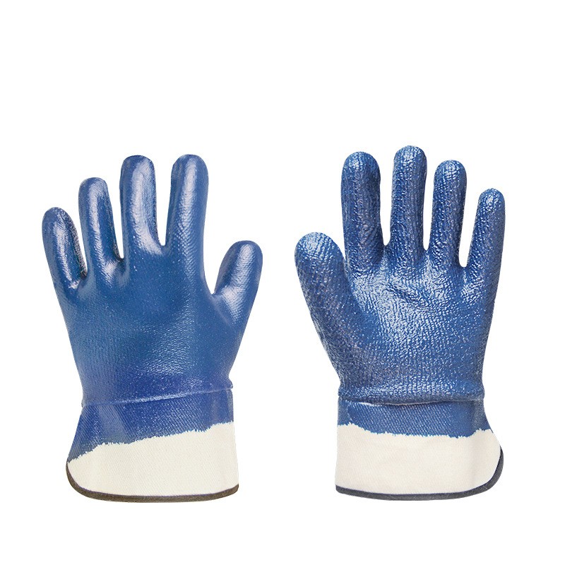 Nitrile Fully Coated Heavy Duty Industrial Safety Gloves Acid Alkali Oil Gas Resistant Blue Nitrile Waterproof Safety Cuff Work Gloves |