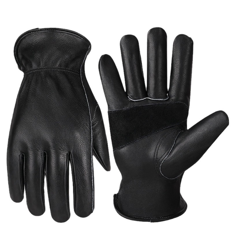 Black Genuine Leather Safety Gloves Cowhide Leather Camping Riding Driving Work Safety Gloves for Men and Women