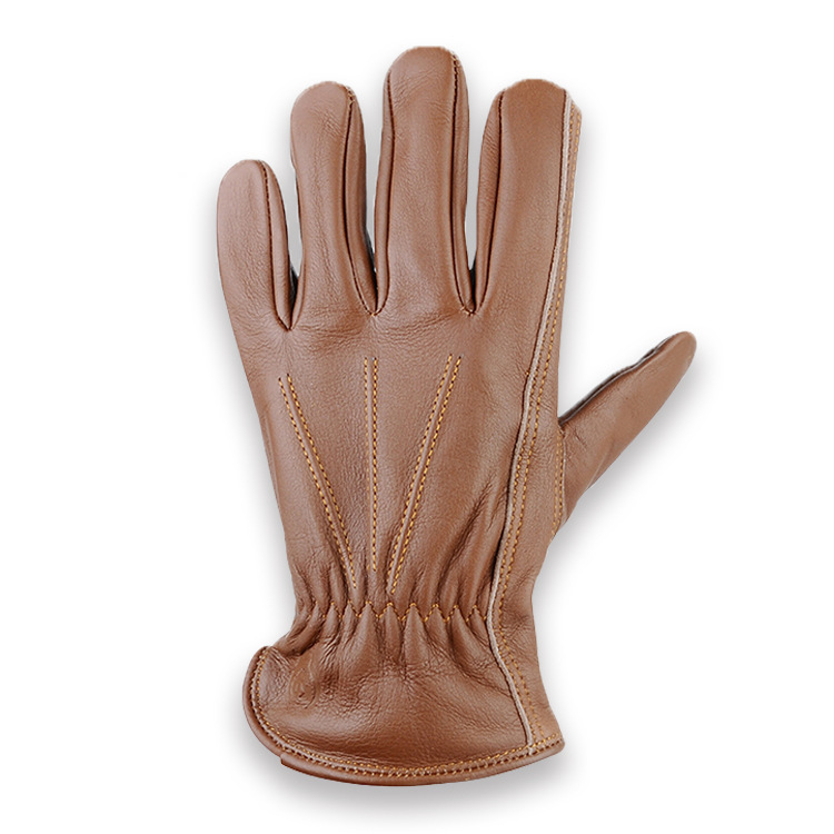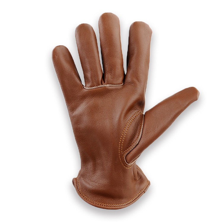 High Quality Genuine Grain Cowhide Brown Leather Work Gloves For Men Durable Gardening Gloves Driver Gloves