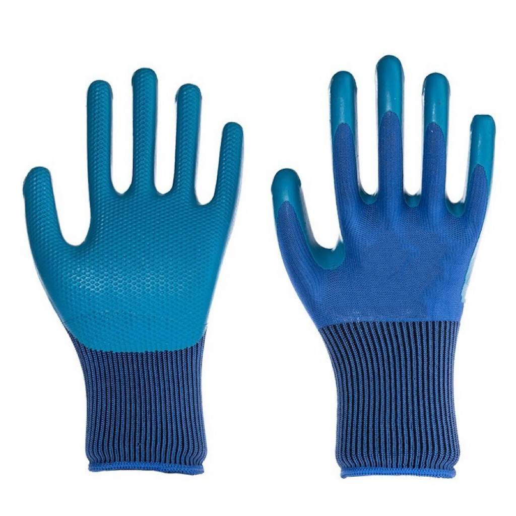 Blue Latex Physical Embossing Working Anti-Slip Safety Industrial General Purpose Latex Coated Gloves